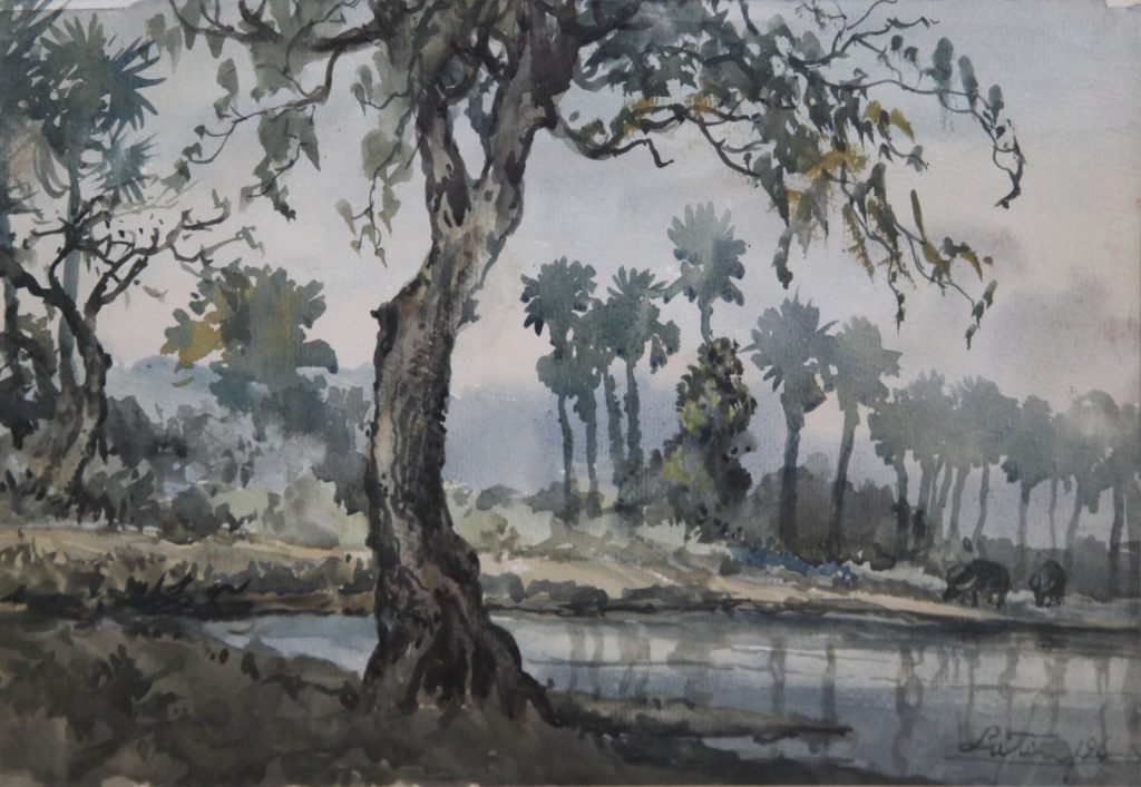 အပူပိုင်းဒေသရဲ့ အညာပင်တွေ ဖြစ်တဲ့ ထနောင်း၊ ဒဟပ်၊ တမာပင်တွေကို လက်ညှိုး လက်ခလယ် လက်မကကြား စုတ်အလုံးလေးကိုလဲပြီး အဖိအဖော့နဲ့ လူးလှိမ့်ပြီး ရေးသွားတာဟာ ပဥ္စလက် ဆန်စွာနဲ့ အညာက အပင်တွေရဲ့ လက္ခဏာကို တန်းမိစေပါတယ်။ ရေးပြီး ပန်းချီကား လေးများကို သော်ဇက်က မယူတဲ့အတွက် ကောင်းစု နှစ်ကား ကျွန်တော်နှစ်ကား ဆိုပြီး ဆရာက လက်ဆောင် ပေးလိုက်ပါတယ်။ လောကနတ် ပြခန်းရှိ ကျွန်တော်တို့ အုပ်စုပြပွဲကို လာဖို့ ဆရာကို ဖိတ်စာပေးပြီး ဖိတ်ခဲ့ပါသေးတယ်။ ဆရာရဲ့ ဥပဓိရုပ်ဟာ သန်မာထွားကျိုင်းပြီး ညိုမှောင်သော အသားရောင် တွေကြား မျက်ခုံးထူထူနှင့် ရိုးသားစွာ ရယ်ပြုံးမှုတွေက ခင်မင်စရာ အလွန်ကောင်းလှပါတယ်။ ၁၉၃၀ ခုနှစ် မုံရွာမြို့ ကျွဲရဲရွာတွင် မွေးဖွားခဲ့ပြီး ဖခင်မှာ ပန်းရန်ဆရာ တစ်ဦးပါ။ ပန်းချီဆရာ မဖြစ်ခင်က ဇာထိုး ပန်းထိုးခြင်း၊ ရက်ကန်းရက်ခြင်းနှင့် စက်ချုပ်ခြင်းစသည့် အလုပ်မျိုးစုံဖြင့် လူငယ်ဘဝကို ဖြတ်သန်း ကျင်လည်ခဲ့ရ ပါတယ်။ ပန်းချီမျိုးရိုး မဟုတ်သော်လည်း ဆရာတော်တစ်ပါးရဲ့ အကူအညီနဲ့ ပန်းချီ ဆရာ ဦးအောင်ချစ် ထံတွင် ပထမဆုံး ပန်းချီပညာကို စတင် သင်ယူခဲ့ပါတယ်။ ၁၉၅၃ မှ ၁၉၅၆ အထိ မန္တလေး ပန်တျာကျောင်းတွင် ပန်းချီ ဘာသာရပ်ကို သင်ယူပြီးမြောက်ခဲ့ပြီးနောက် ပန်းချီဆရာကြီးများဖြစ်ကြသော ဦးကံညွန့်၊ ဦးချစ်မြဲ နှင့် ဦးဘသက်တို့ ထံမှာလည်း ပညာနို့ရည် သောက်စို့ခဲ့ကာ မန္တလေး အထက်တန်းကျောင်းတွင် ပန်းချီနည်းပြ ဆရာအဖြစ် တာဝန် ထမ်းဆောင် ခဲ့ပါတယ်။ ၁၉၇၂ မိတ္ထီလာ ဆရာ အတတ်သင် ကောလိပ်တွင်လည်း ပန်းချီ နည်းပြလုပ်ခဲ့ပါသေးတယ်။ ၁၉၇၈မှာ ပြည်ထောင်စု တိုင်းရင်းသား ဖွံဖြိုးရေးသိပ္ပံ ပန်းချီ ဌာနမှူးအဖြစ် တာဝန်ယူခဲ့ပြီး ၁၉၈၁မှာ အငြိမ်းစား ယူခဲ့ပြီးနောက် အချိန်ပြည့် ပန်းချီရေးဆွဲခြင်းဖြင့်သာ အချိန်ကုန်ဆုံး စေခဲ့ပါတယ်။ မုံရွာမြို့နယ် ရိုးရာ ပန်းပညာရှင် အစည်းအရုံးတွင်လည်း နာယကအဖြစ် တာဝန်ယူခဲ့ပါတယ်။ တစ်ကိုယ်တော်ပြပွဲများ ကိုလည်း ရန်ကုန်၊ မန္တလေး၊ မုံရွာ စသည့် မြို့ကြီးများတွင် ပြသခဲ့ပါတယ်။ ၁၉၉၁ခုနှစ်တွင် မုံရွာ၌ vision house art gallery ပန်းချီ ပြခန်းကို ဖွင့်လှစ်ကာ ထိုနှစ်မှာပင် ဆရာ အချိန်ယူ ပြင်ဆင်ခဲ့တဲ့ တစ်ကိုယ်တော်ပြပွဲ အသက် ၆၀ပြည့် ပန်းချီကား ၆၀ ဖြင့် ဂါထာ ၆၀ ဟု အမည်ဆန်းဆန်းနှင့် တစ်ကိုယ်တော်ပြပွဲ ကို ပြသခဲ့ပါတယ်။ ထိုဂါထာ ၆၀ ပြပွဲသတင်းမှာ ထိုအချိန် မဂ္ဂဇင်းများတွင် လူအများရဲ့ စိတ်ဝင်စားခြင်း ခံခဲ့ရပါတယ်။ သက္ကရာဇ် ၂၀၀၀ ပြည့်နှစ်မှာ လည်း ဆရာ့ရဲ့အသက် ၇၀ ပြည့် အထိမ်းအမှတ်ပွဲကို ရန်ကုန်၊ မန္တလေး၊ မုံရွာ မြို့ ကြီးများတွင် ပြသခဲ့ရာ အောင်မြင်မှု များစွာ ရခဲ့ပါတယ်။ ၂၀၀၅ ခုနှစ်တွင် ရန်ကုန်မြို့ ရှိ AZADA Gallery တွ