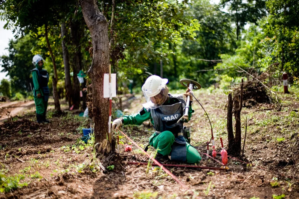 ဗြိတိသျှအခြေစိုက် စေတနာ့ဝန်ထမ်း မိုင်းရှင်း လုပ်ငန်း အကြံပေးရေးအဖွဲ့ (MAG) က ကမ္ဘောဒီးယားနိုင်ငံသို့ လွန်ခဲ့သော လေးနှစ်က ပထမဆုံးအကြိမ် ရောက်ရှိလာသည်။ မြေမြှုပ်မိုင်း အများဆုံးရှိသည့် ဒေသကို သတ်မှတ် ပိုင်းခြားလိုက်ပြီးနောက် ဒေသခံ လူများဖြင့် ဖွဲ့စည်းထားသော အဖွဲ့ငယ်များကို မိုင်းရှင်းနည်း သင်တန်းပေးသည်။ သင်တန်းက သုံးလ ကြာမြင့်သည်။ ကမ္ဘောဒီးယားနိုင်ငံ၌ အများဆုံးတွေ့ရသည့် မြေမြှုပ်မိုင်း ၂၈ မျိုး ရှာဖွေပုံ ရှာဖွေနည်းနှင့် မိုင်းဖောက်ခွဲ ဖျက်ဆီးနည်းတို့ကို အခြေခံ ကျကျ သင်ပေးသည်။